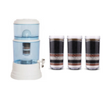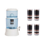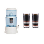 This Benchtop Alkaline Water Purifier restores your tap water to a clean, great-tasting, mineralized, and alkalized state, using the power of gravity alone – no chemicals, artificial materials, water pressure, or electricity.