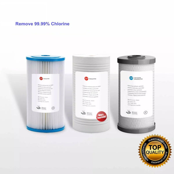 Upgrade your water filtration system with our Triple Big White/Blue Polyspun Sediment & Carbon Block Filter (10″ x 4.5″)—a powerful three-stage filtration solution designed for high sediment loads, chlorine removal, and enhanced water purity. This premium set includes three distinct filters that work together to provide clean, great-tasting water for your home.
